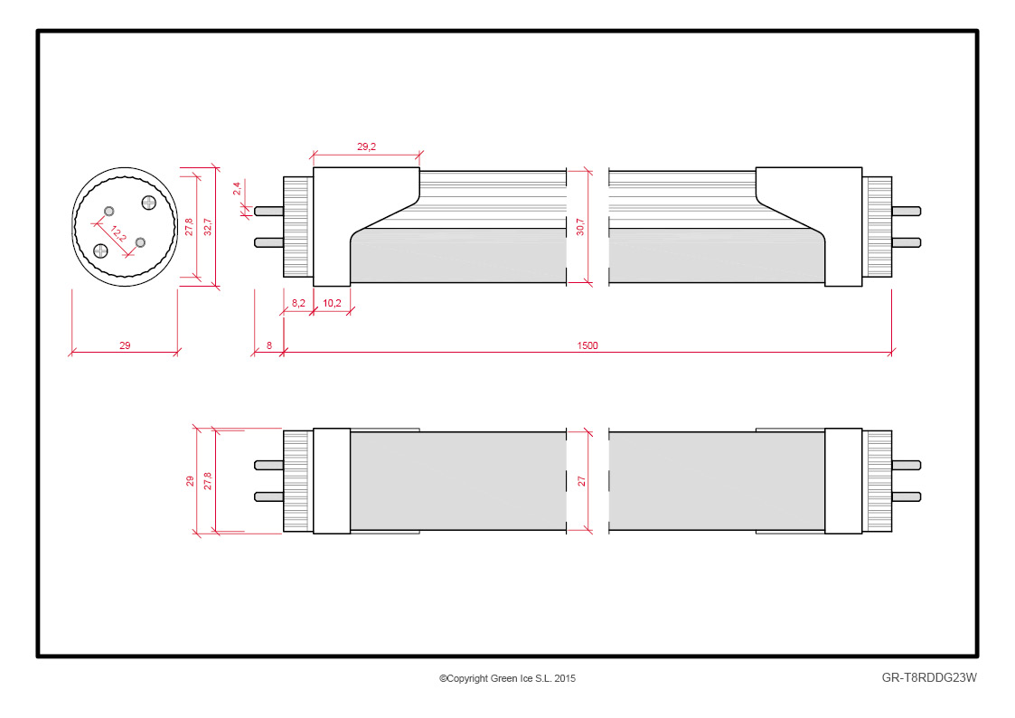 T8 LED Tube 23W 2760Lm 6000ºK 150Cm Rotating Head 60,000H [BX3-T8RDDG23W-CW-O]