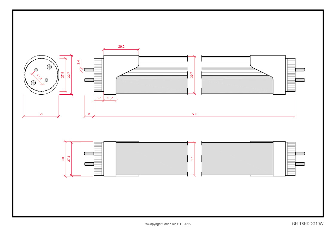 Tubo LED T8 10W 1200Lm 6000ºK 60Cm Testa Girevole 60.000H [BX3-T8RDDG10W-O-CW]